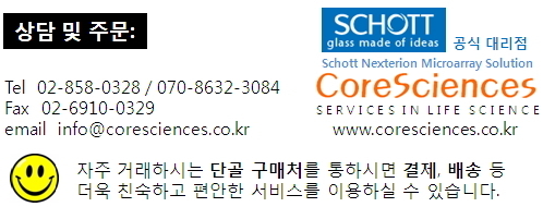 Microarray용 glass slide 전문 브랜드 Schott Nexterion 한국 대리점 코아사이언스 입니다.